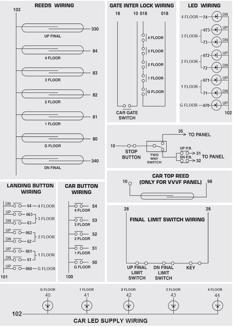 G + 4 Collective/Selective Microprocessor controller site wiring details - Per Floor Reed Logic